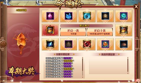 5、调整命运轮奖励,包含6级宝石、5级宝石,还有各种养成道具