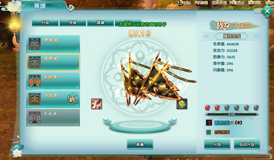 高级背旗不仅拥有炫酷的外形和大量的属性,还能提供强大的背旗技能