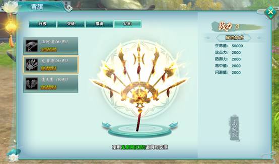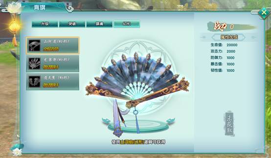 背旗系统可以增加角色的数值属性,使角色增加炫酷外形