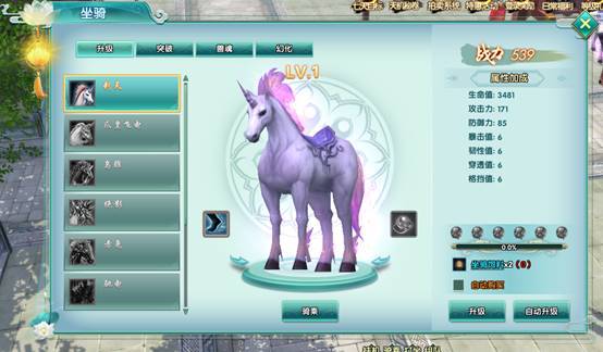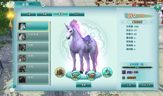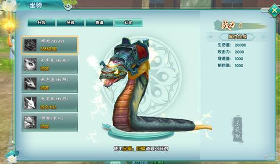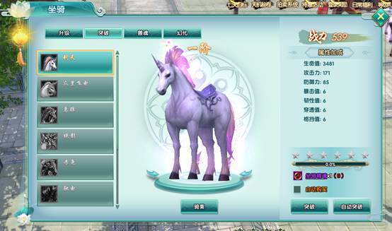 只有等级达标的坐骑才能突破成为更高级的坐骑,等级不够则需要继续喂养